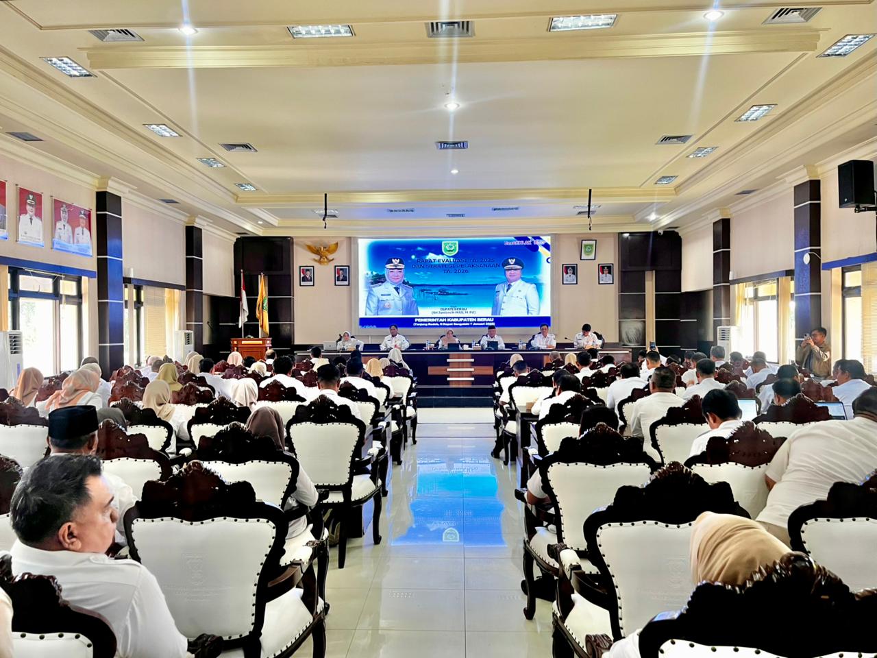 Tanjung Redeb – Pemerintah Kabupaten Berau menggelar Rapat Evaluasi Pelaksanaan APBD Tahun Anggaran 2025 serta Strategi Pelaksanaan APBD Tahun Anggaran 2026 di Ruang Rapat Sangalaki pada Rabu (7/1/2026). Kegiatan ini dihadiri Bupati Berau, Wakil Bupati Berau, Sekretaris Daerah, para Asisten, Staf Ahli, Kepala OPD, Kepala Bagian, serta Camat se-Kabupaten Berau. Rapat tersebut menjadi momentum penting bagi jajaran pemerintah daerah untuk memperkuat koordinasi, menyelaraskan arah kebijakan, serta memastikan program pembangunan berjalan efektif dan memberikan hasil nyata bagi masyarakat.