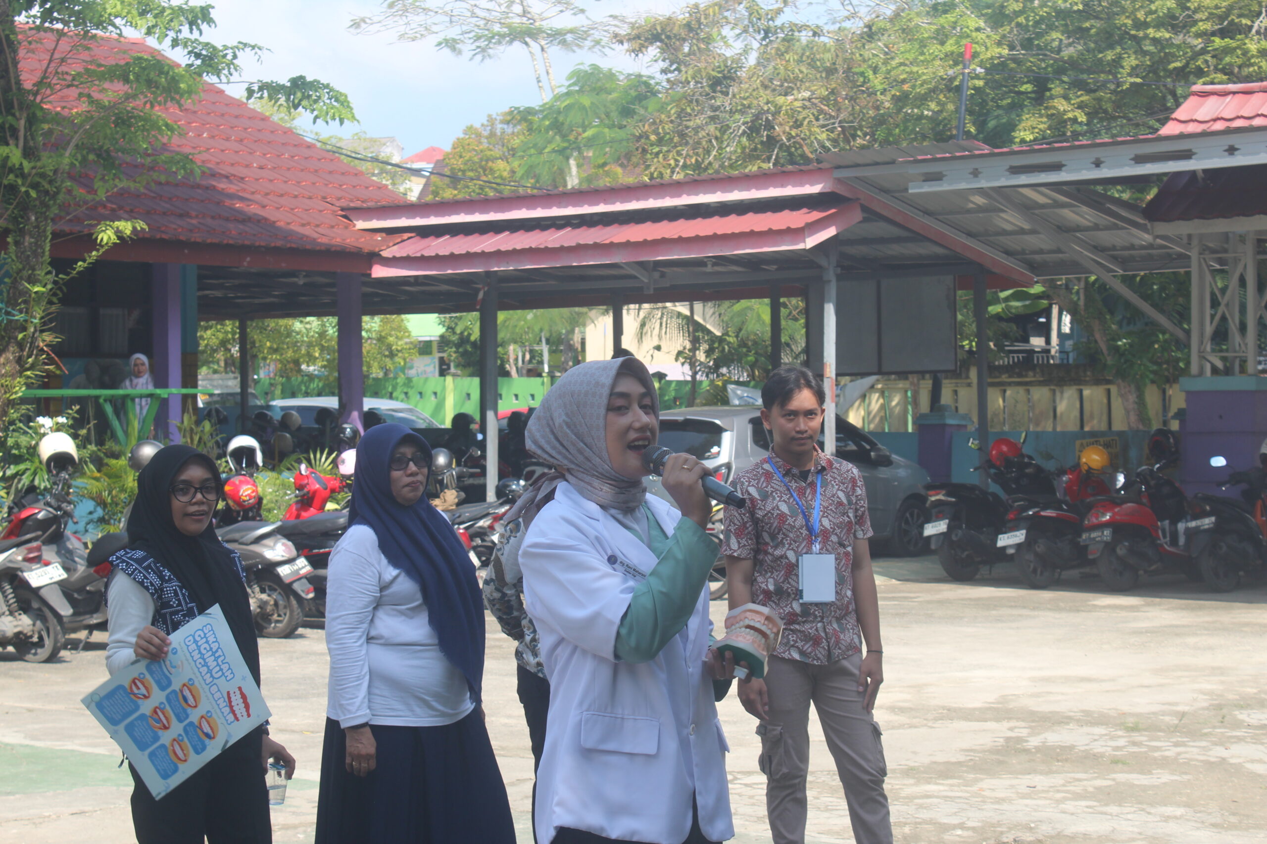 Dalam kegiatan tersebut, drg. Rani Maharani hadir tidak hanya sebagai tenaga kesehatan, tetapi juga sebagai sosok yang membawa semangat kebersamaan dan kepedulian. Ia bersama para relawan memilih untuk berinteraksi langsung dengan para siswa, memberikan edukasi kesehatan secara ringan dan menyenangkan.